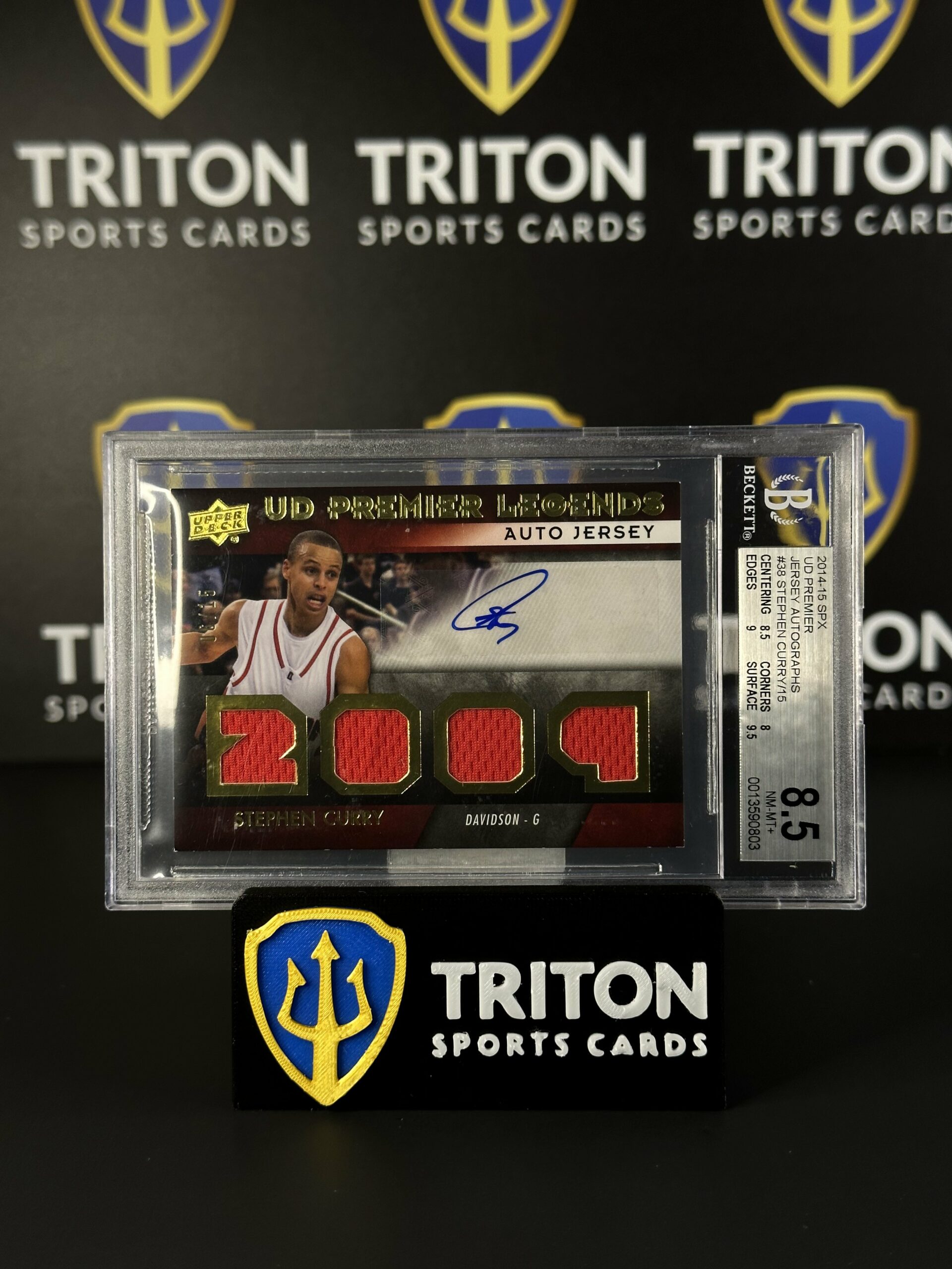 2014-15 SPX UD Premier Jersey Stephen Curry Patch Auto (6/15) BGS NM-MT 8.5
