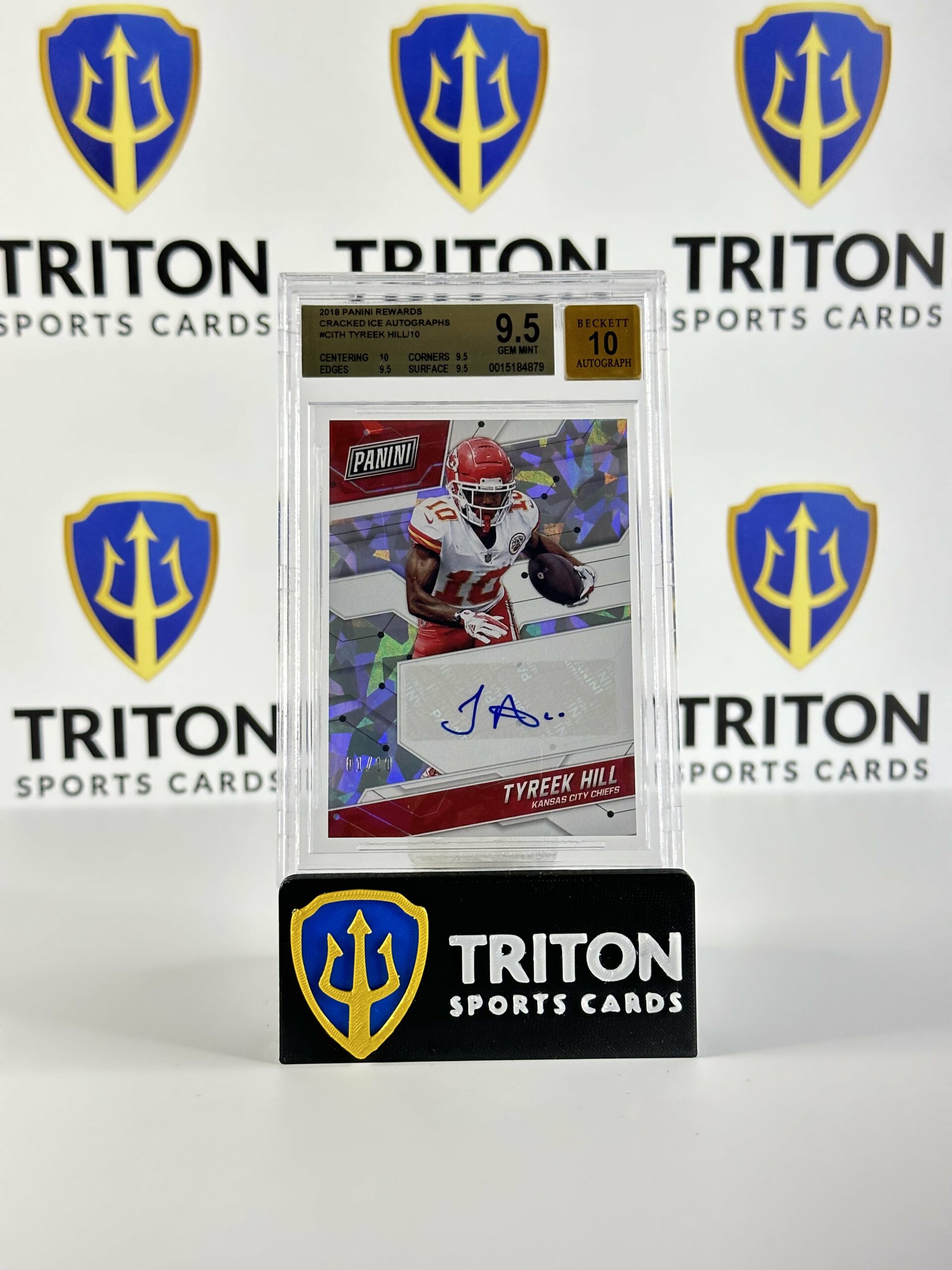 2018 Panini Rewards Cracked Ice Auto Tyreek Hill (1/10) BGS 9.5