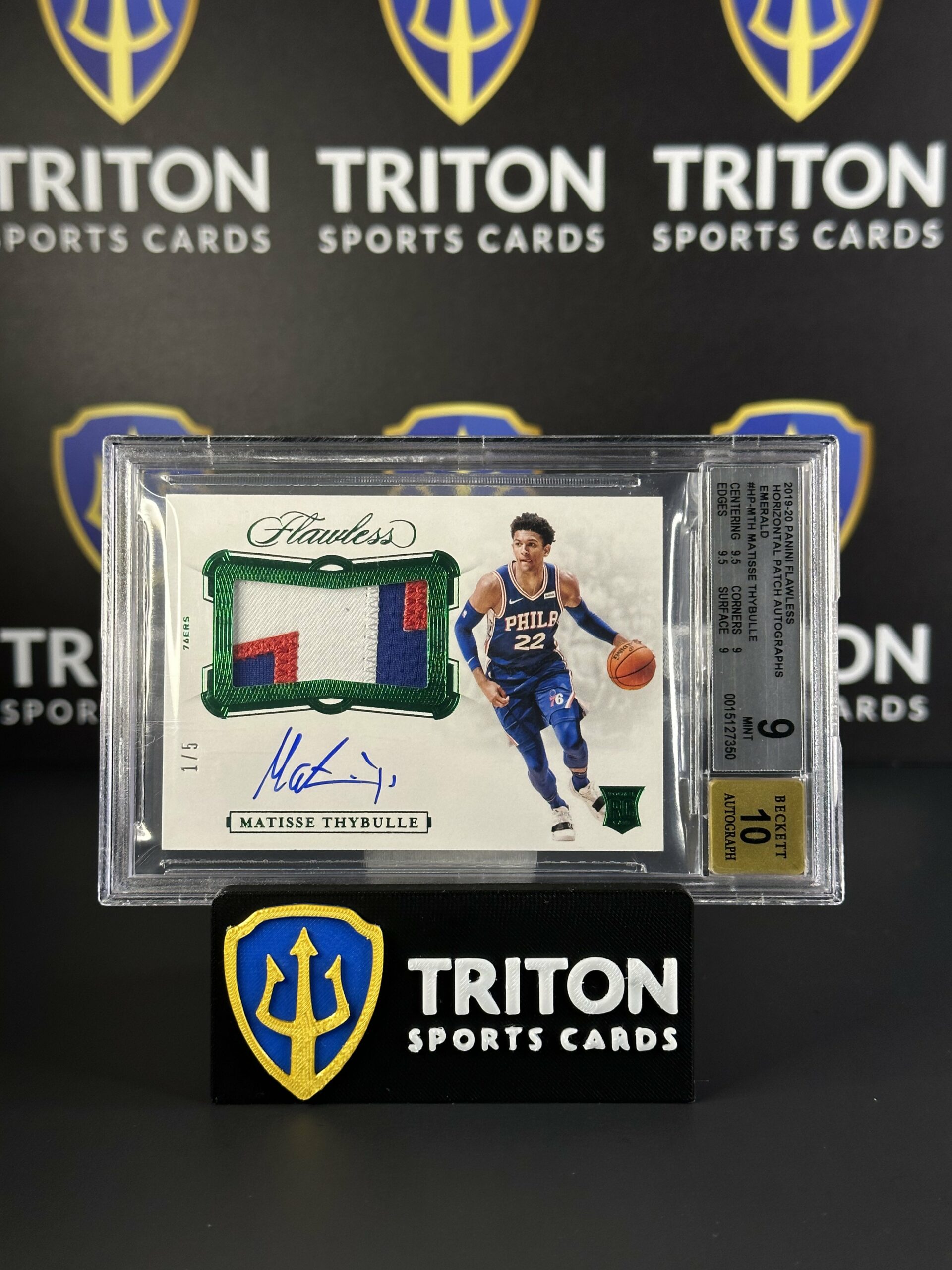 2019-20 Panini Flawless Horizontal Patch Autographs Emerald Matisse Thybulle (1/5) BGS 9