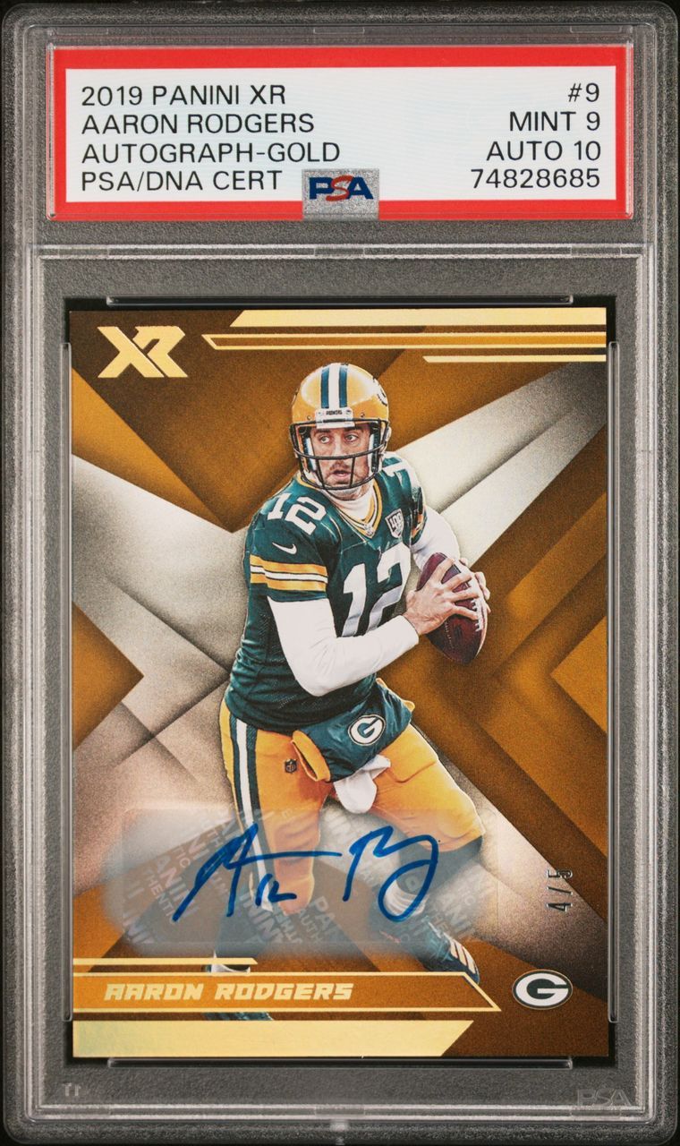 2019 Panini XR Aaron Rodgers Auto Gold (4/5) PSA Mint 9 Auto 10