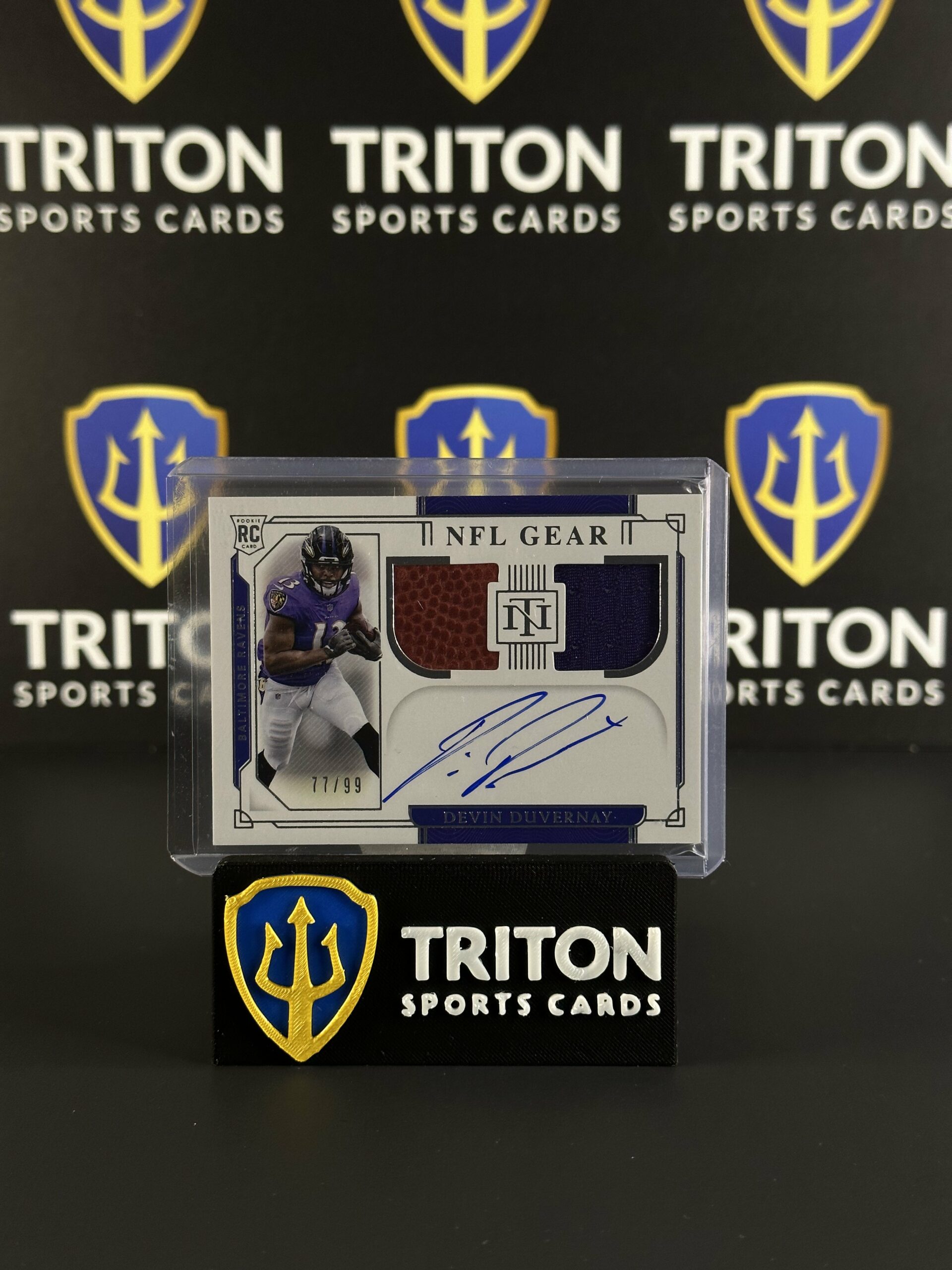 2020 National Treasures NFL Gear Devin Duvernay Dual Relic Rookie on Card Auto (77/99)