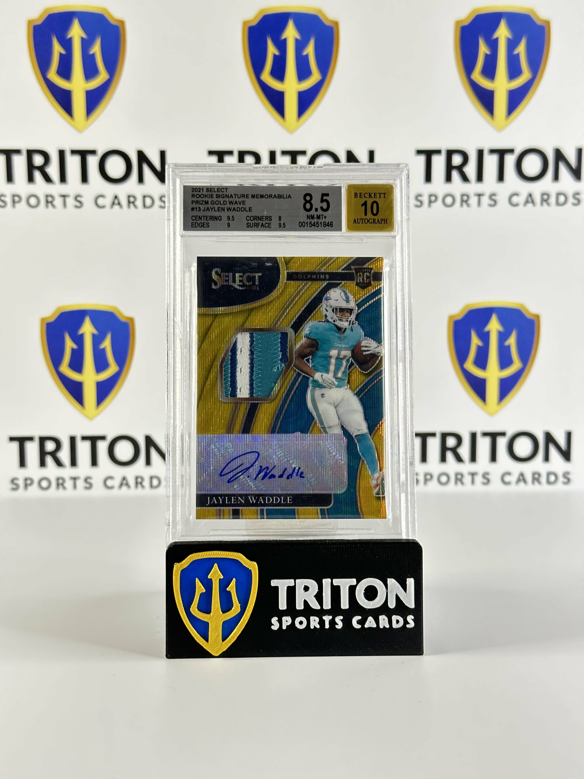 2021 Panini Select Rookie Patch Auto Gold Wave Jaylen Waddle BGS 8.5